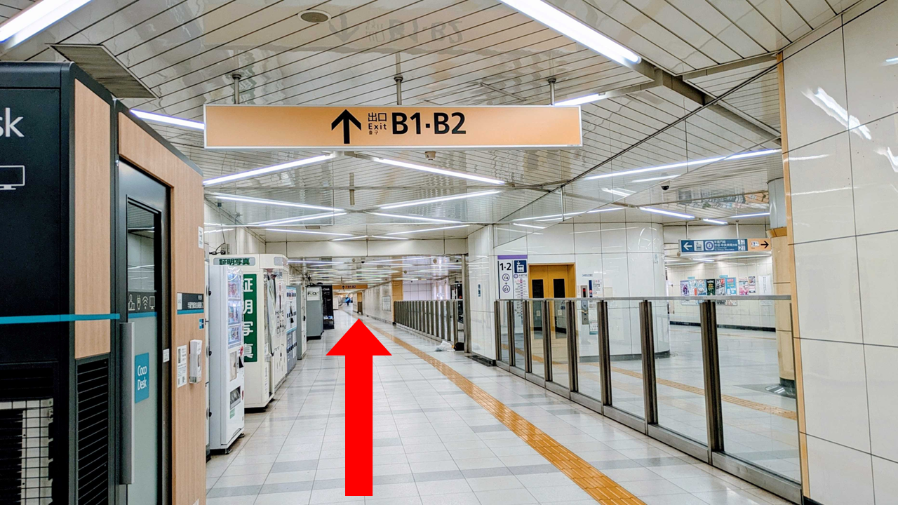 右に振り返り、そのままB1・B2出口方面へ直進します。