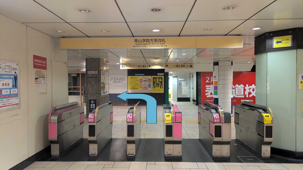 ルート②表参道駅|半蔵門線|青山学院方面改札を左に曲がります。