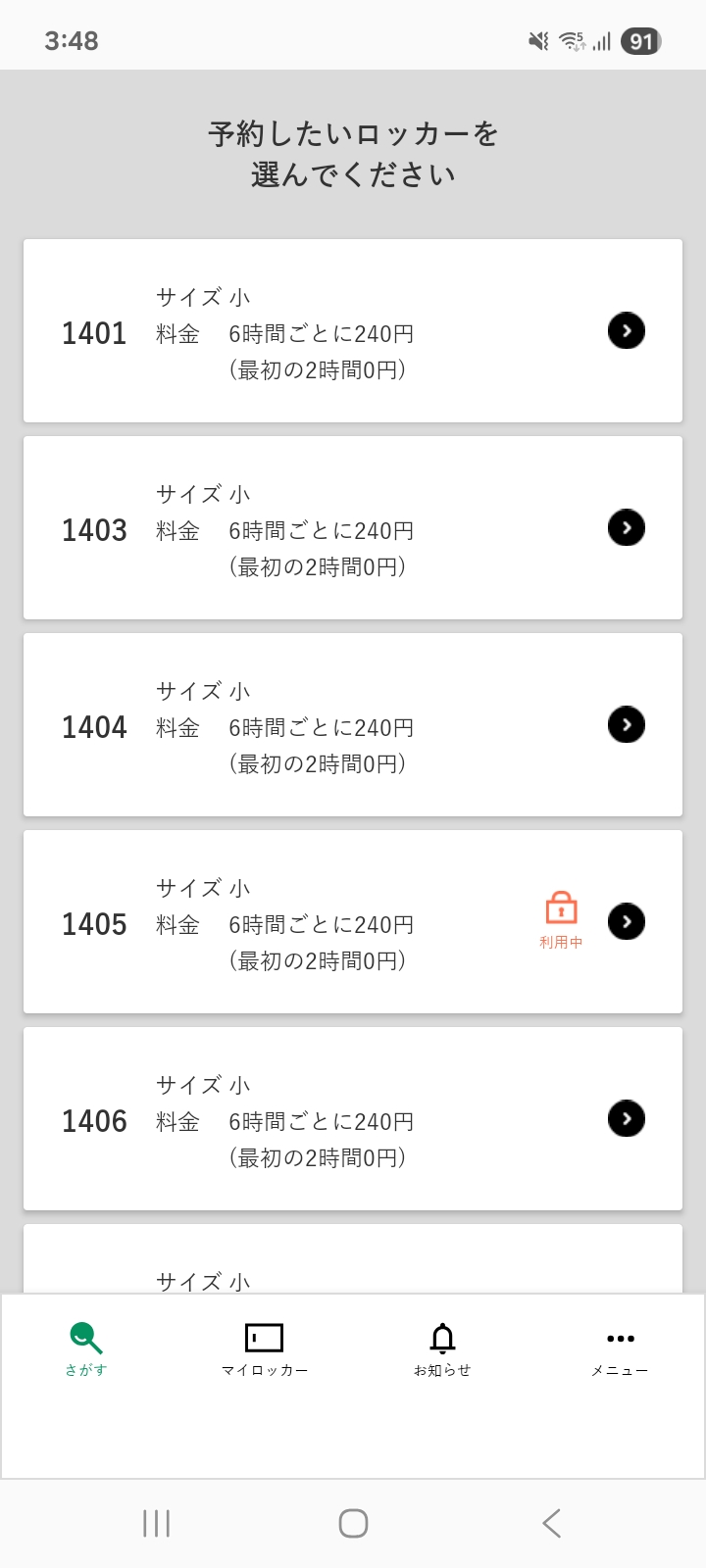 利用するロッカー番号を選択する