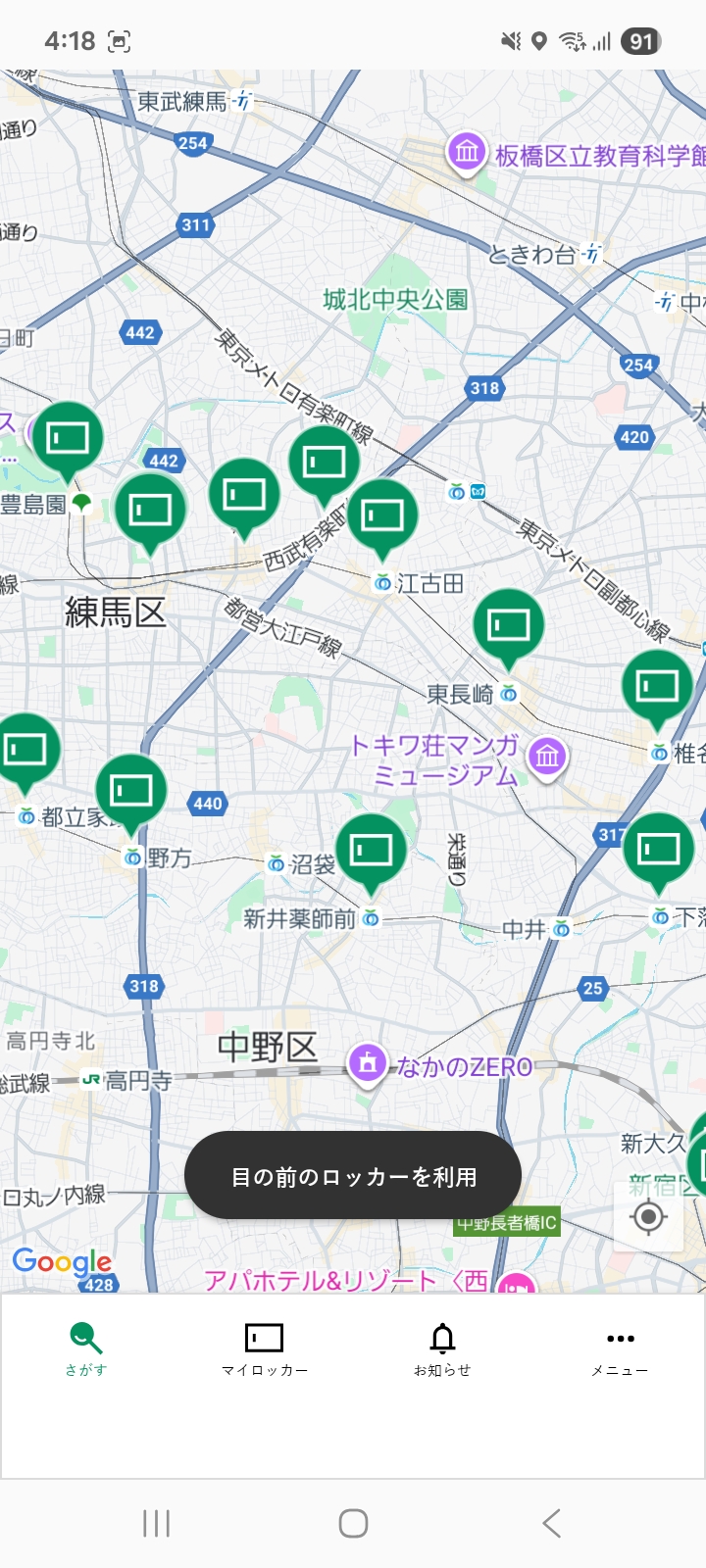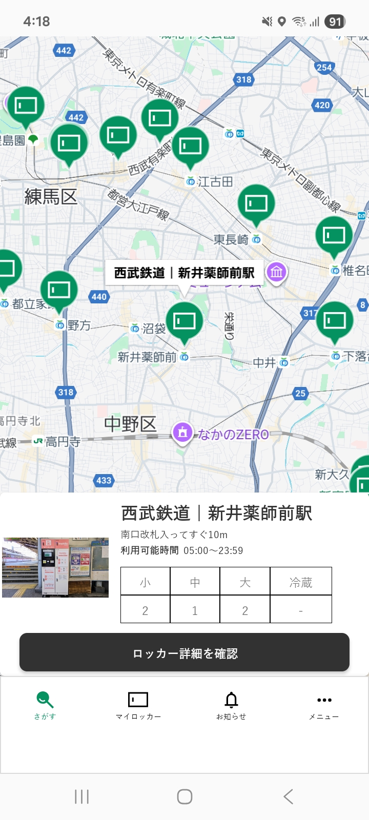 ロッカーへ近づいてもロッカー番号が表示されない場合は、以下をお試しください。