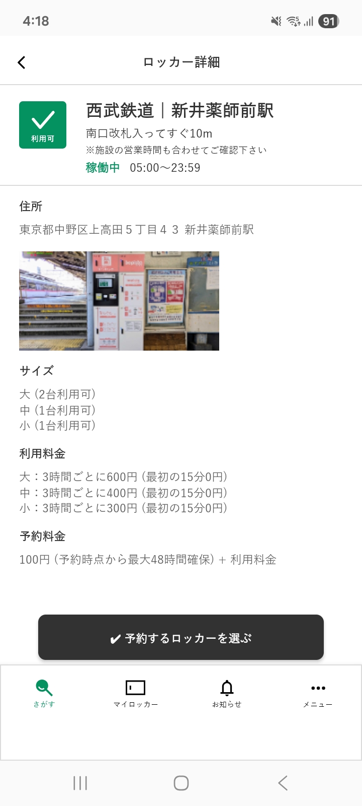 予約したロッカーがあるので、
