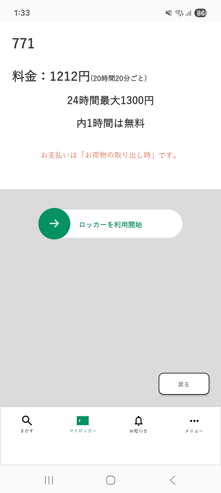 [決済してロッカーを開ける]を押して、支払い